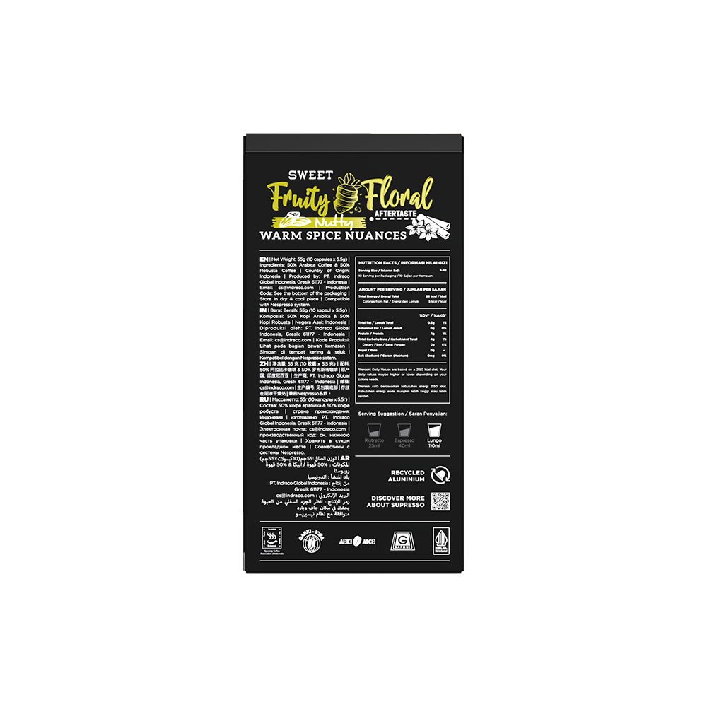 Ingredients: 50% Arabica Coffee & 50% Robusta Coffee
